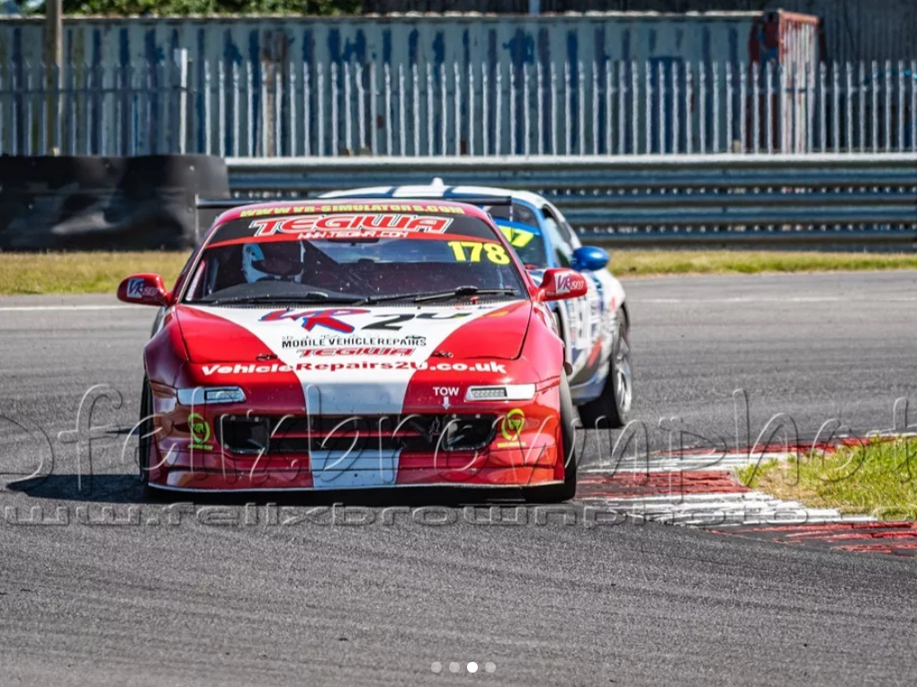 My start was excellent, squeezing past several cars at Turn 1.  I even managed to keep 3 Class B cars at bay for several laps but 2 of them eventually passed at the end of the Bentley Straight.  The other Class B car made a lunge at Turn 1 but out braked himself, shooting in front of me which enabled me to get the cut back.  Unfortunately several laps on he tried the same move again but was even later on the brakes.  He smashed into the rear quarter of my car which spun me off the track with the car fortunately just coming to a halt, nudging the tyre wall with the splitter.  Unbeknown to me over one foot of side skirt was broken off, the side intake panel smashed and the sill bent.  Frustratingly I had to sit and watch several cars pass before it was safe to rejoin.  Even more frustrating was one of those cars was driven by Ivor!